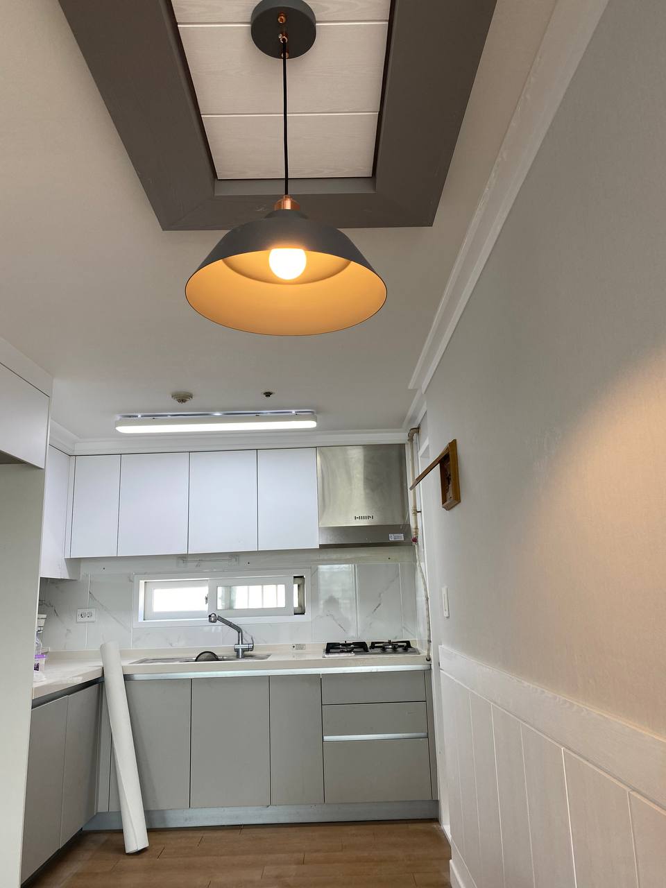 천장 조명과 주방 조명은 고객님이 심플하고 노멀한 디자인을 원하셔서
